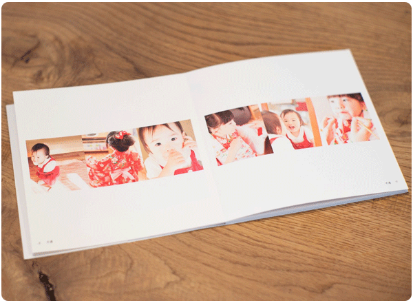 例えば以前撮らせていただいたあるお子さんは、産まれたときに未熟児だったため、ご両親は七五三を迎えられた感動を強く感じていらっしゃいました。そんなこともあり、家の中で撮影させていただいた際には壁にかかっていた赤ちゃんの頃の写真も撮らせていただき、集合写真と一緒に見開きの1枚にまとめました。